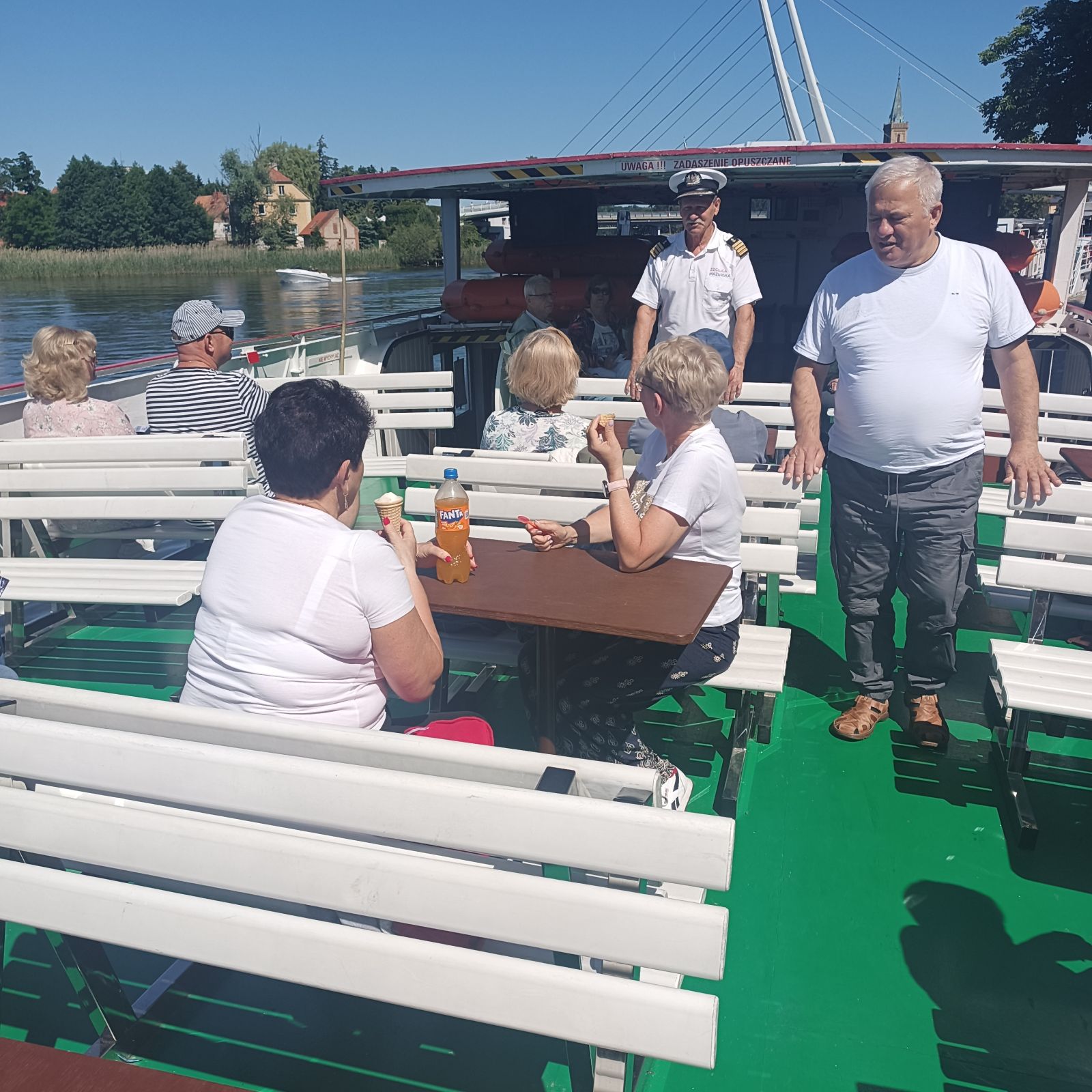 Ostatniego dnia odbył się rejs statkiem po Wielkich Jeziorach Mazurskich z Mikołajek. Trasa obejmowała: Jezioro Mikołajskie, Śniardwy, Bełdany, śluzę w Guziance, jeziora Guzianka Mała i Wielka oraz Ruciane-Nida. W drodze powrotnej do ośrodka wypoczynkowego zwiedziliśmy Park Dzikich Zwierząt Kadzidłowo.